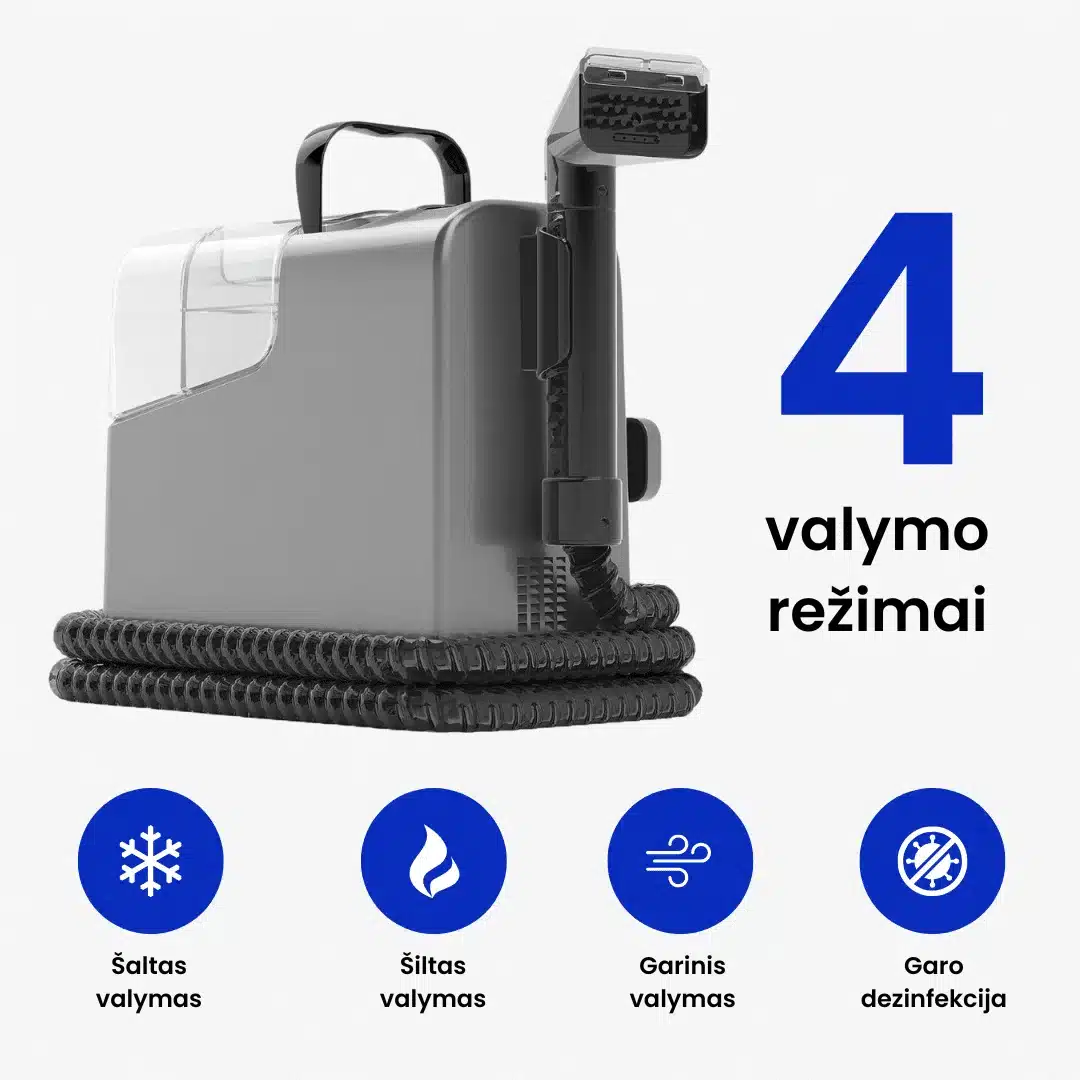 Šis patobulintas dulkių siurblys – tikras namų švaros stebuklas. Vienu įrenginiu galite atlikti tris svarbiausius namų ruošos darbus: siurbti dulkes, plauti grindis ir net jas sterilizuoti.
