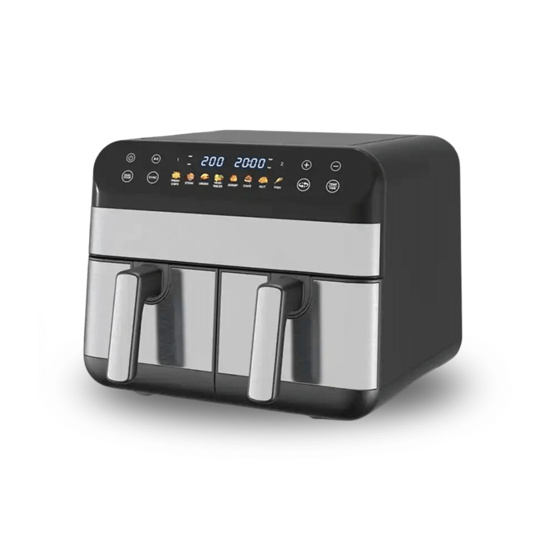 Karšto oro gruzdintuvė FRITO DOUBLE – dviejų krepšelių gruzdintuvė, kurioje galite gaminti 2 skirtingus patiekalus vienu metu. Ji yra net 10 litrų talpos, todėl galėsite gaminti maistą visai šeimai ar net draugų susibūrimams. 8 kepimo programos leidžia paprastai paruošti įvairius patiekalus – nuo traškių bulvyčių iki mėsos patiekalų ar desertų! Be to, gruzdintuvė FRITO DOUBLE turi specialią vaisių džiovinimo funkciją, kuri suteikia dar daugiau galimybių pasigaminti skanių ir sveikų užkandžių.