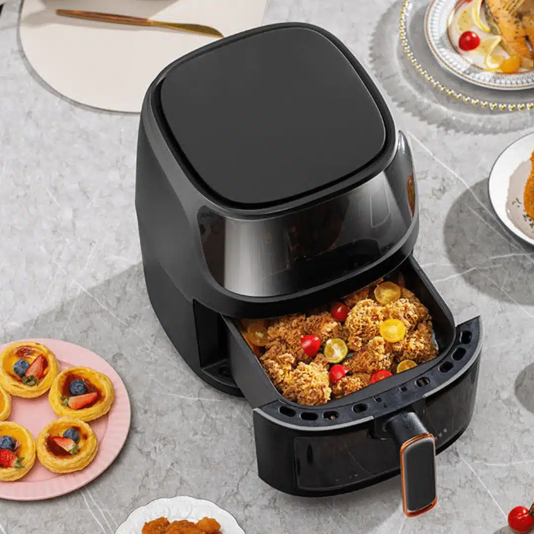 Mėgaukitės sultingu, traškiu, mažiau kalorijų ir nepaprastai skoniu turinčiu maistu. Gaminant karšto oro gruzdintuvėje išsaugoma daugiau naudingų maisto medžiagų ir vitaminų.