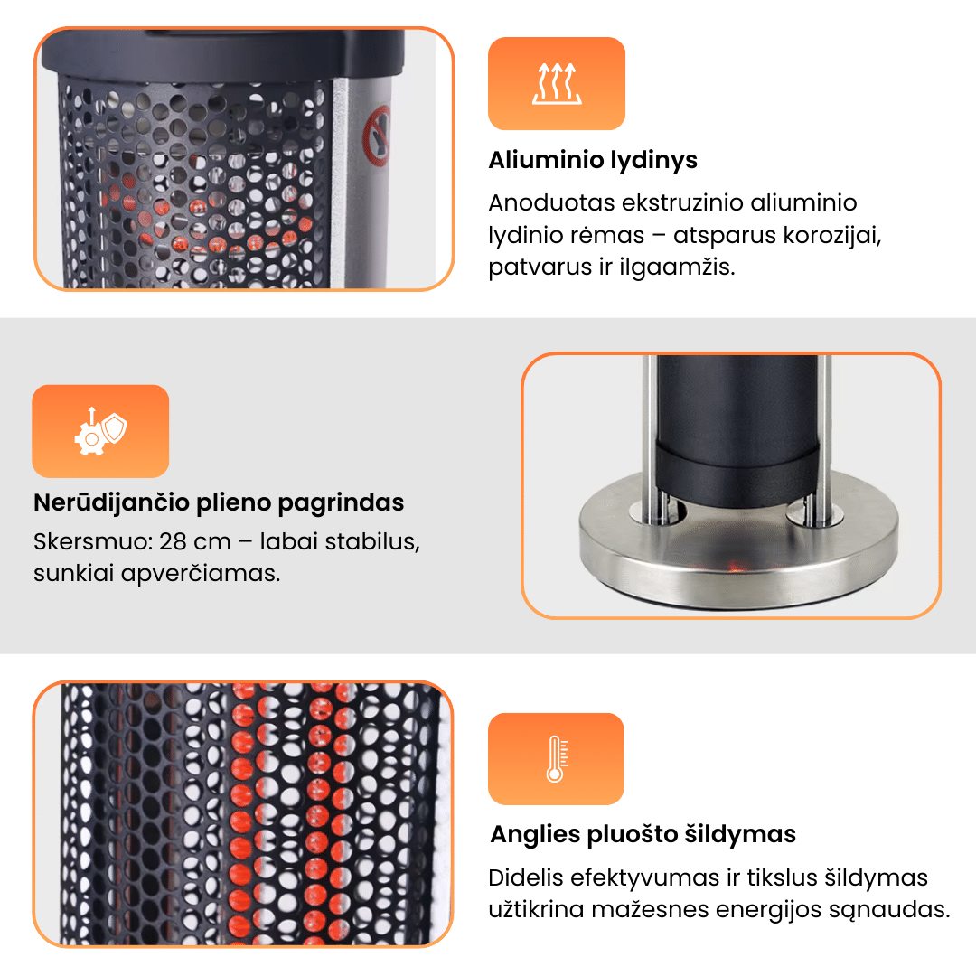 Šildo greitai, atrodo solidžiai