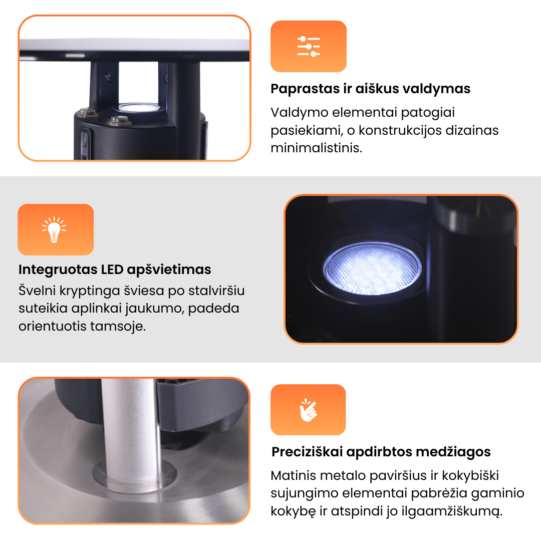 Švelni, kryptingai po stalviršiu sklindanti šviesa suteikia aplinkai jaukumo, saugumo ir padeda orientuotis tamsoje.