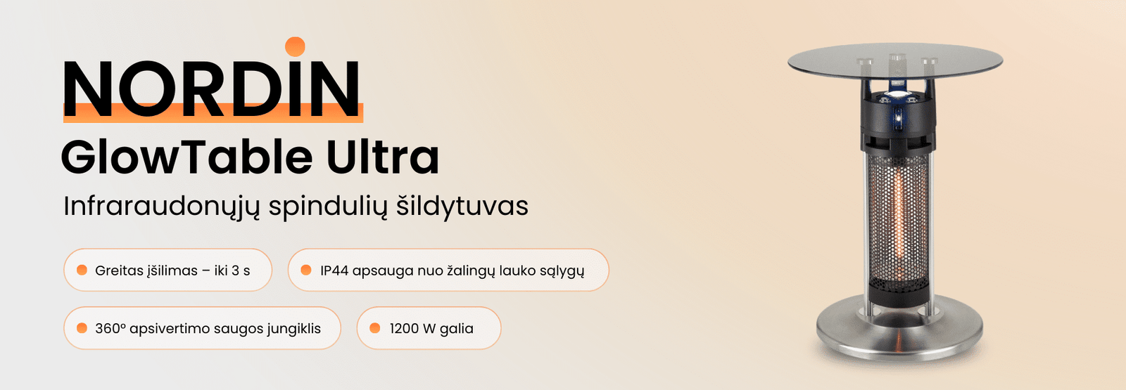 Infraraudonųjų spindulių šildytuvas NORDIN GlowTable Ultra