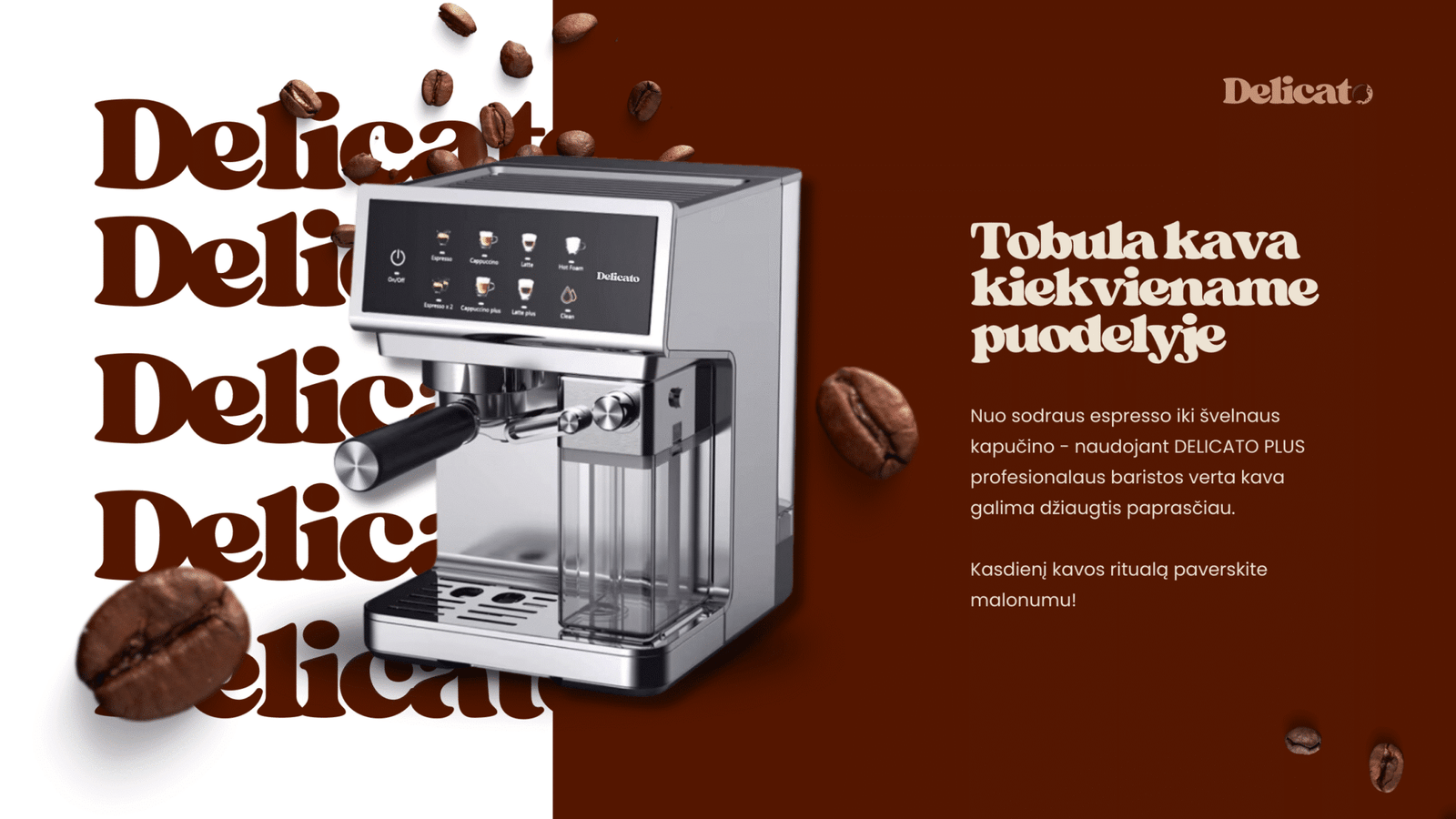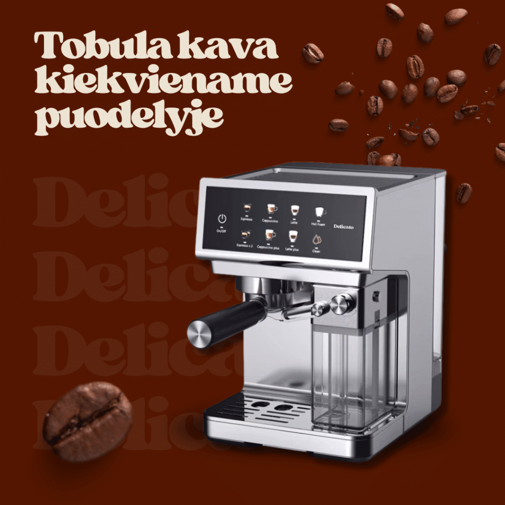 Pusiau automatinis kavos aparatas DELICATO PLUS – tobulam puodeliui kvapnios kavos!