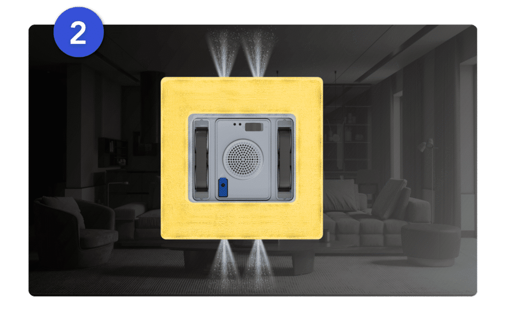 Roboto korpuse yra integruoti 4 patobulinti purkštukai, kurie užtikrina galingesnį ir tikslesnį purškimą, efektyviai pašalindami net įsisenėjusius ir sunkiai įveikiamus nešvarumus. Tai užtikrina gilesnį valymą įdedant mažiau pastangų ir švarius langus kasdien.
