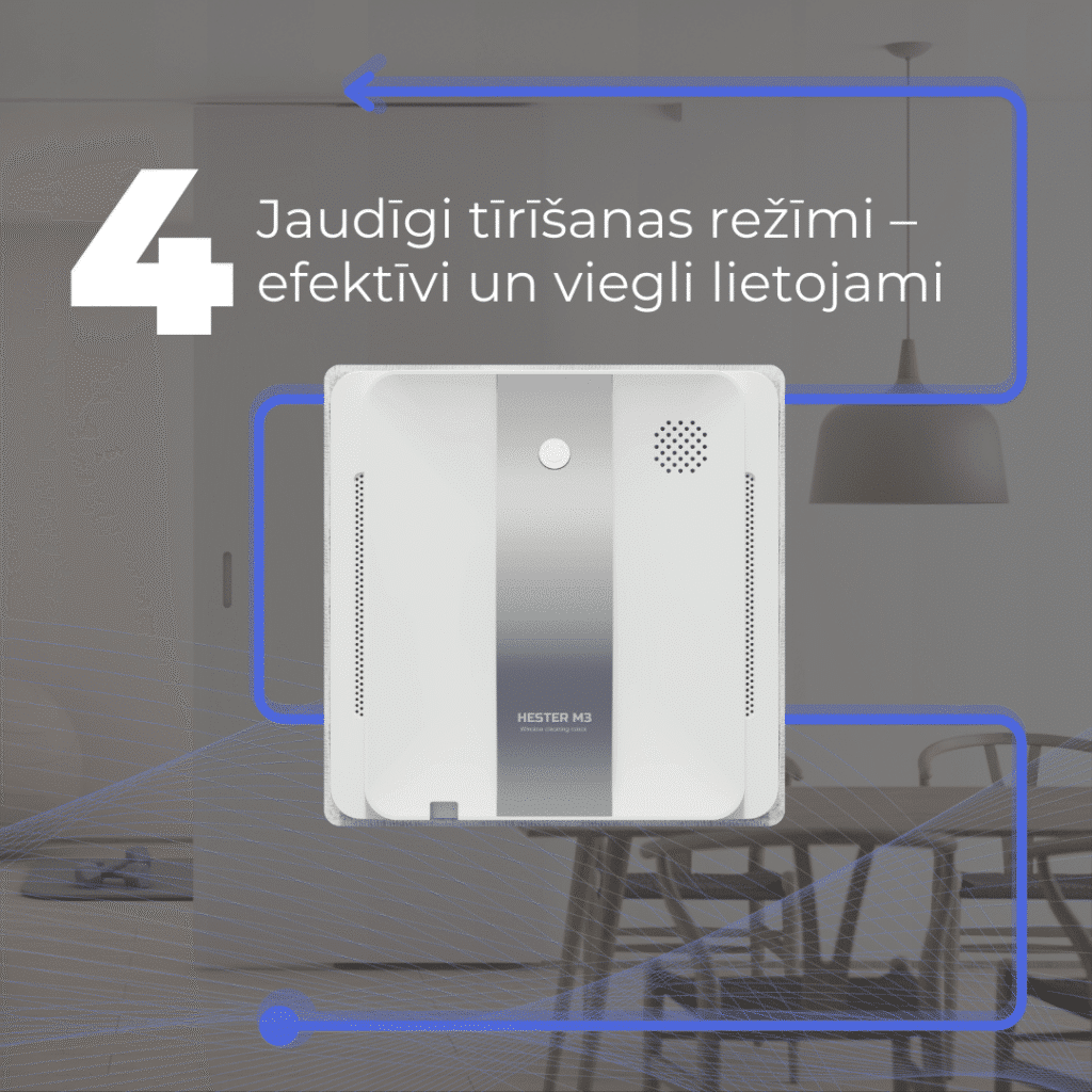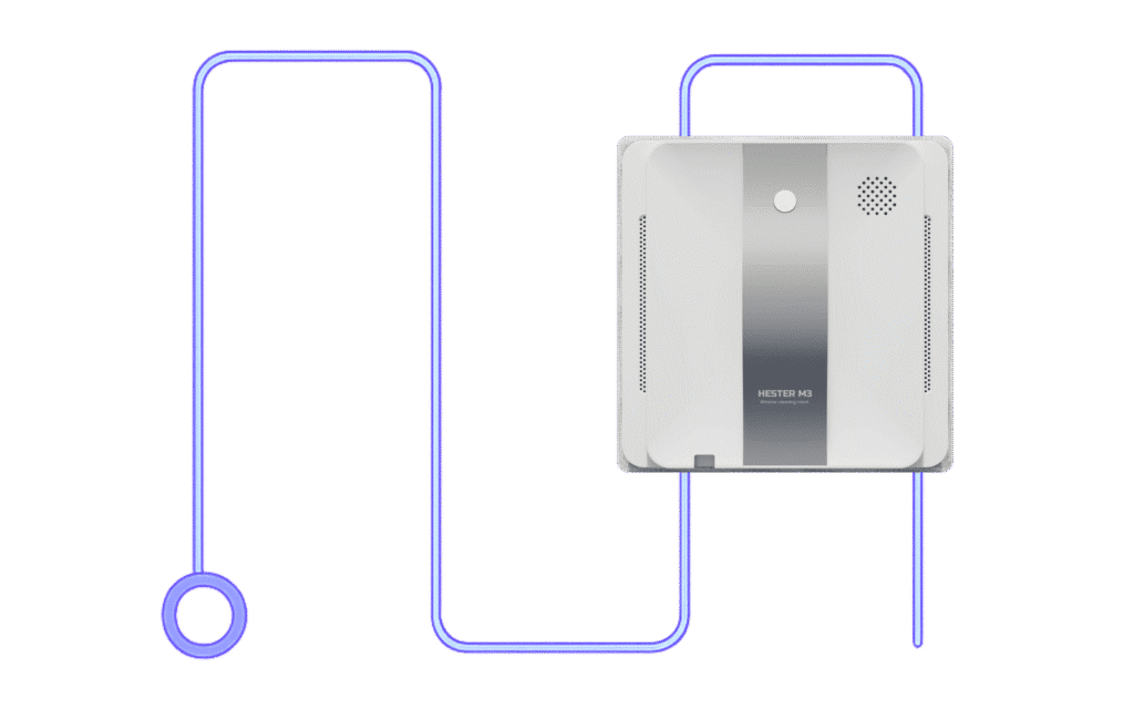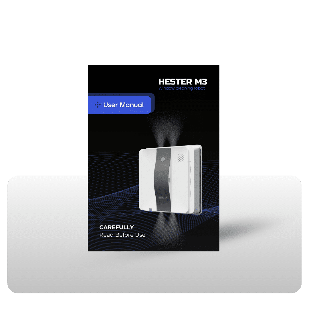 Robotas yra išmanus, todėl beveik visus darbus jis atlieka pats. Jums tereikia uždėti šluostes, įjungti robotą į elektros tinklą ir pritvirtinti apsauginę virvę. Kai robotas yra paruoštas darbui, uždėkite jį ant paviršiaus ir paspauskite įjungimo mygtuką, HESTER M3 tvirtai prisitrauks prie paviršiaus. Pulteliu pasirinkite valymo režimą. Šluostėms išsitepus – jas pakeiskite naujomis ir tęskite valymą.