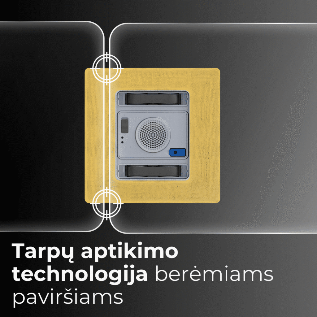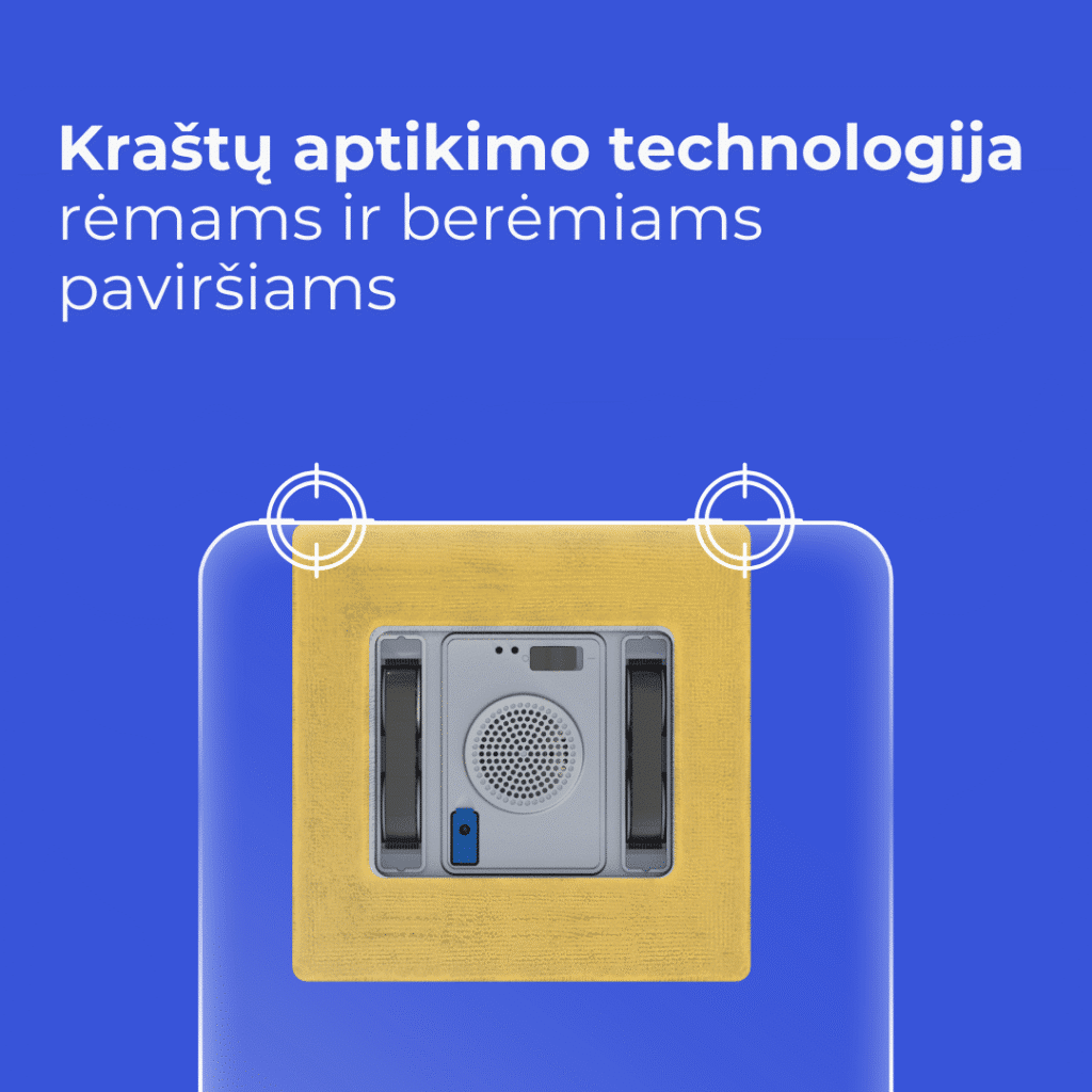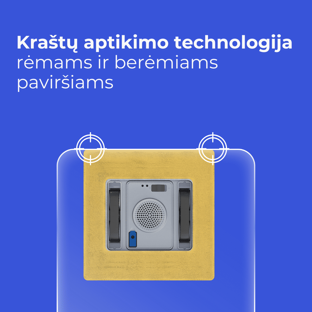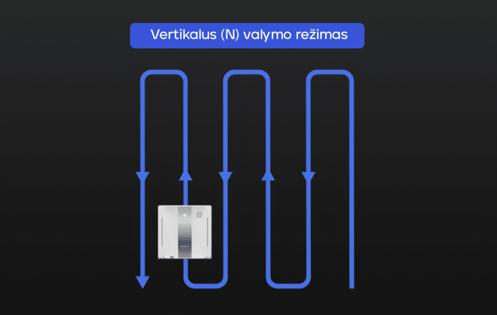 Langų valymo robotas juda vertikaliai, aukštyn ir žemyn per visą paviršiaus plotą. Tinka tiek aukštiems, tiek siauriems langams.