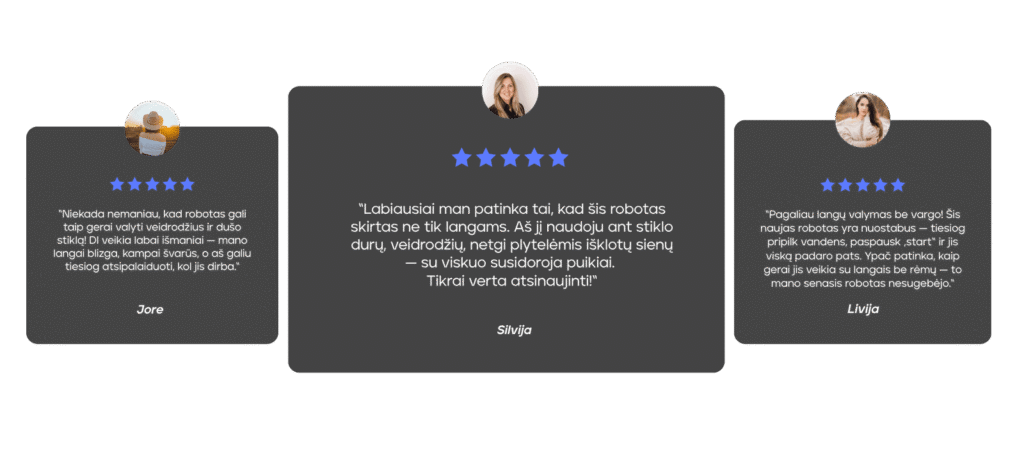 Gražus ir modernus robotukas. Susitvarkė su dideliais vitrininiais langais. Rekomenduoju 🙂