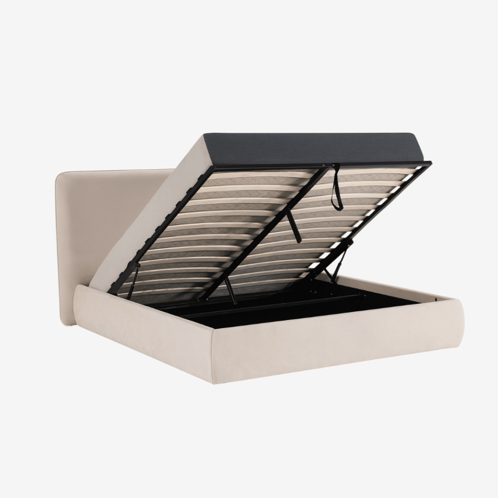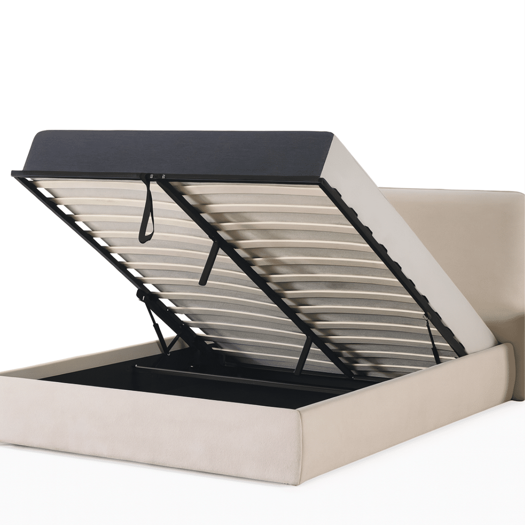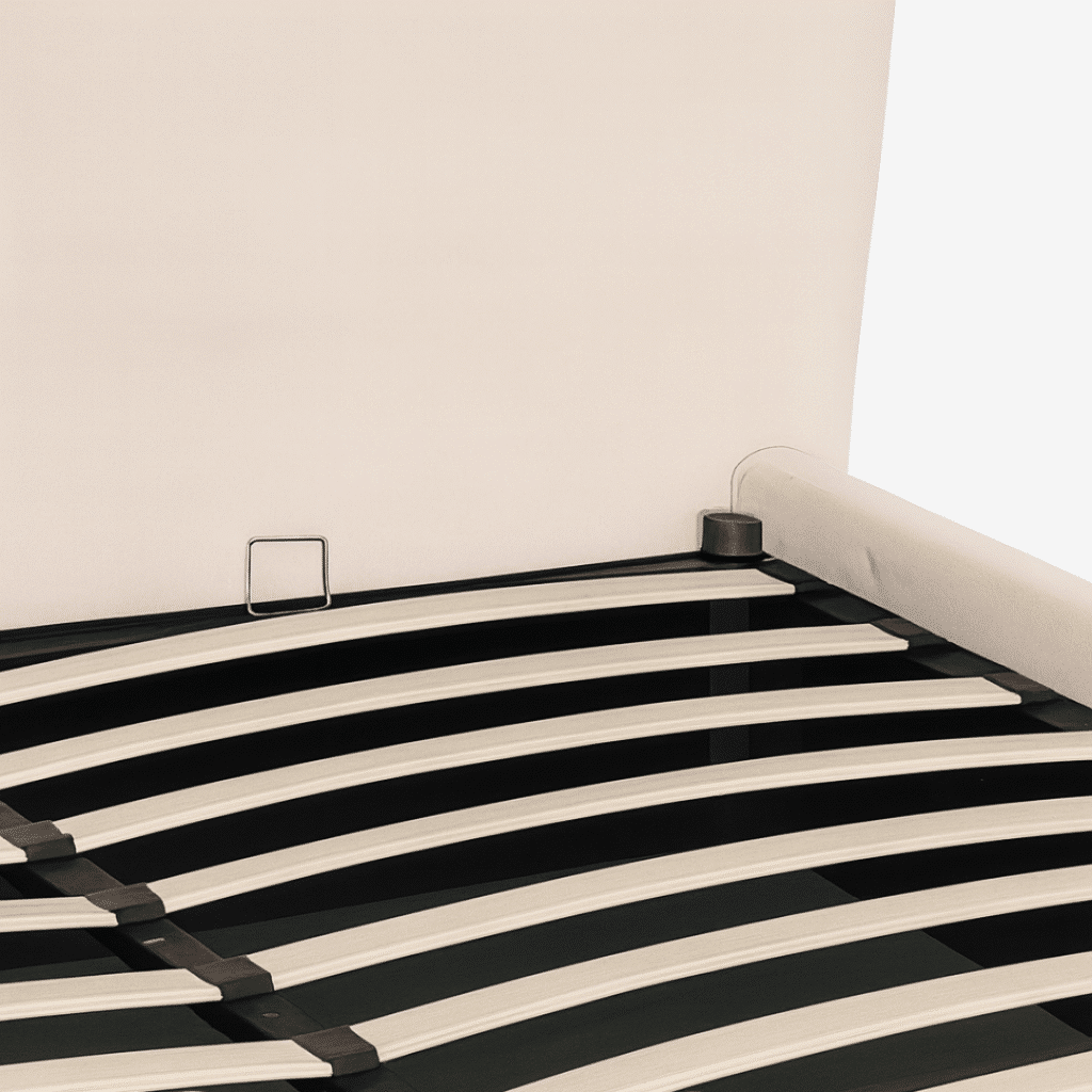✔ Dėl dujinių amortizatorių mechanizmo patalynės dėžę atidaryti lengva ir paprasta.