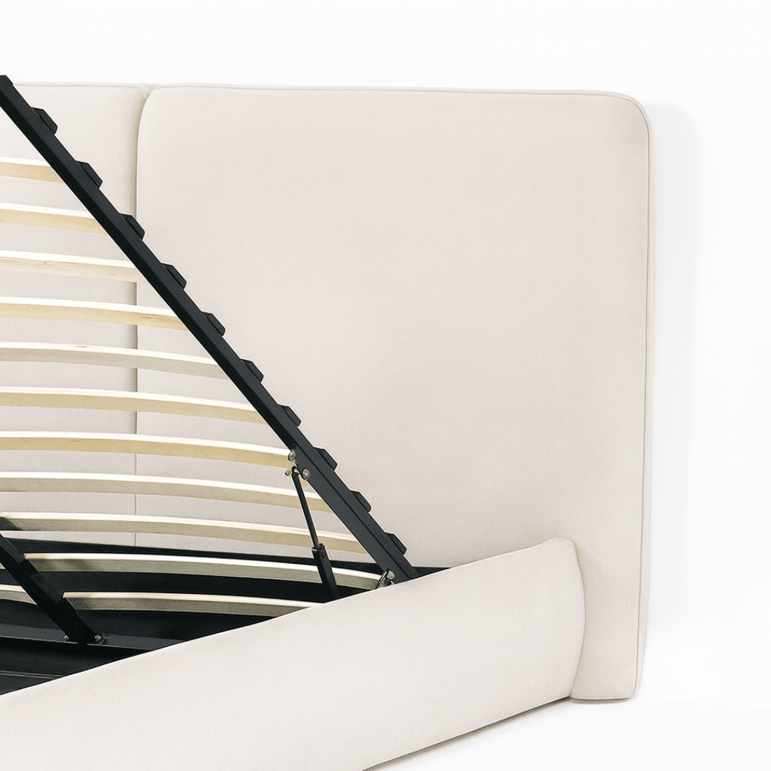 ✔ Dėl neutralių baldo atspalvių ir minimalistinio dizaino lovą lengva integruoti bet kokioje erdvėje.