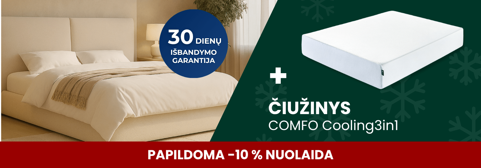 ✔ Patogumą nuo pirmos dienos – nereikia atskirai rūpintis čiužinio pasirinkimu ar matmenų derinimu.