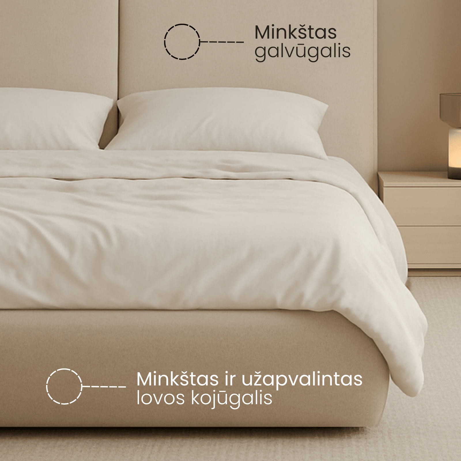 ✔ Galite derinti su naktinėmis spintelėmis, šviestuvais ar dekoratyvinėmis pagalvėlėmis.