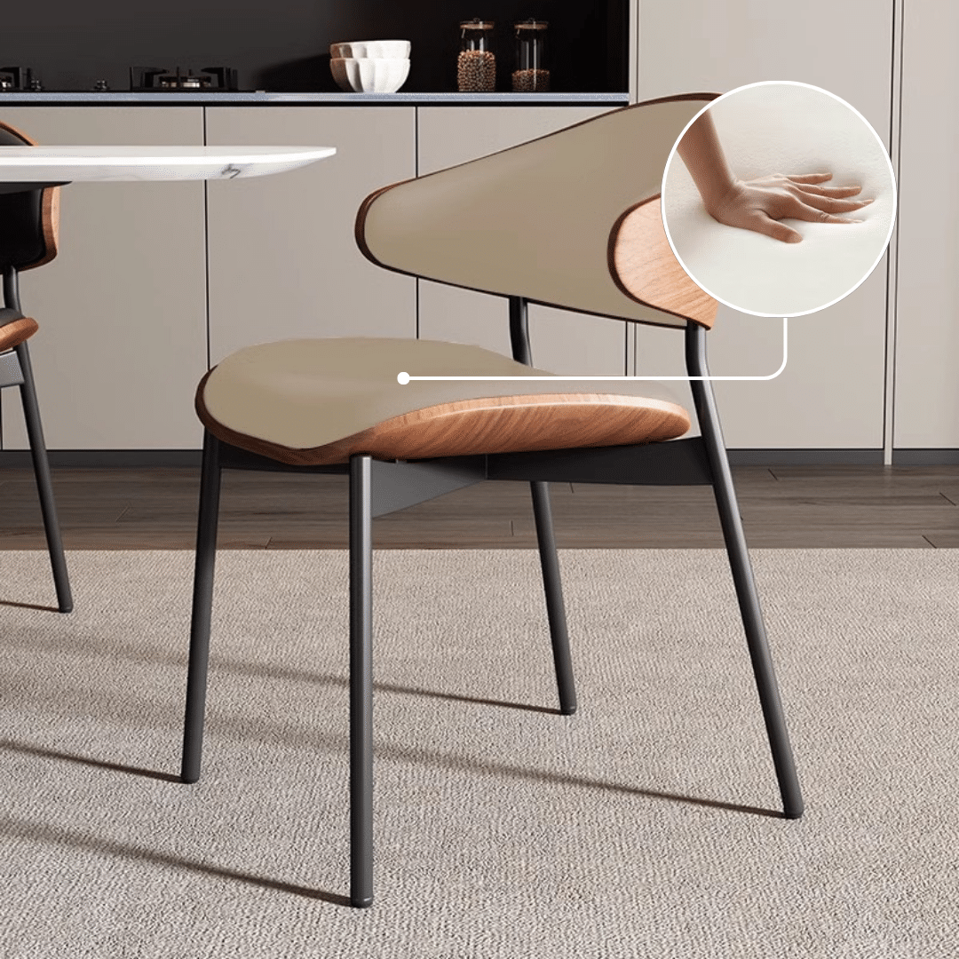 Pamatykite, kaip MONO DineLine kėdės natūraliai įsilieja į šiuolaikišką namų interjerą – nuo minimalistinių virtuvių iki jaukių valgomojo zonų. Subtilus medienos raštas, matinės juodos spalvos metalinės kojos ir kokybiškas dirbtinės odos (PU) apmušalas kuria estetiką, kuri atrodo švari, bet neperspausta. Šios medžiagos ne tik gerai atrodo, bet ir yra praktiškos naudoti kasdien – lengvai valomos, atsparios dėvėjimuisi ir išlieka vizualiai tvarkingos ilgą laiką.