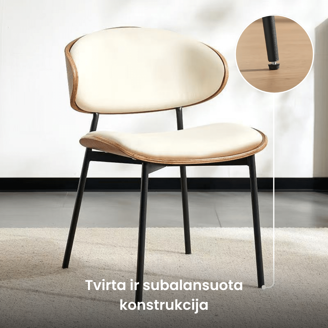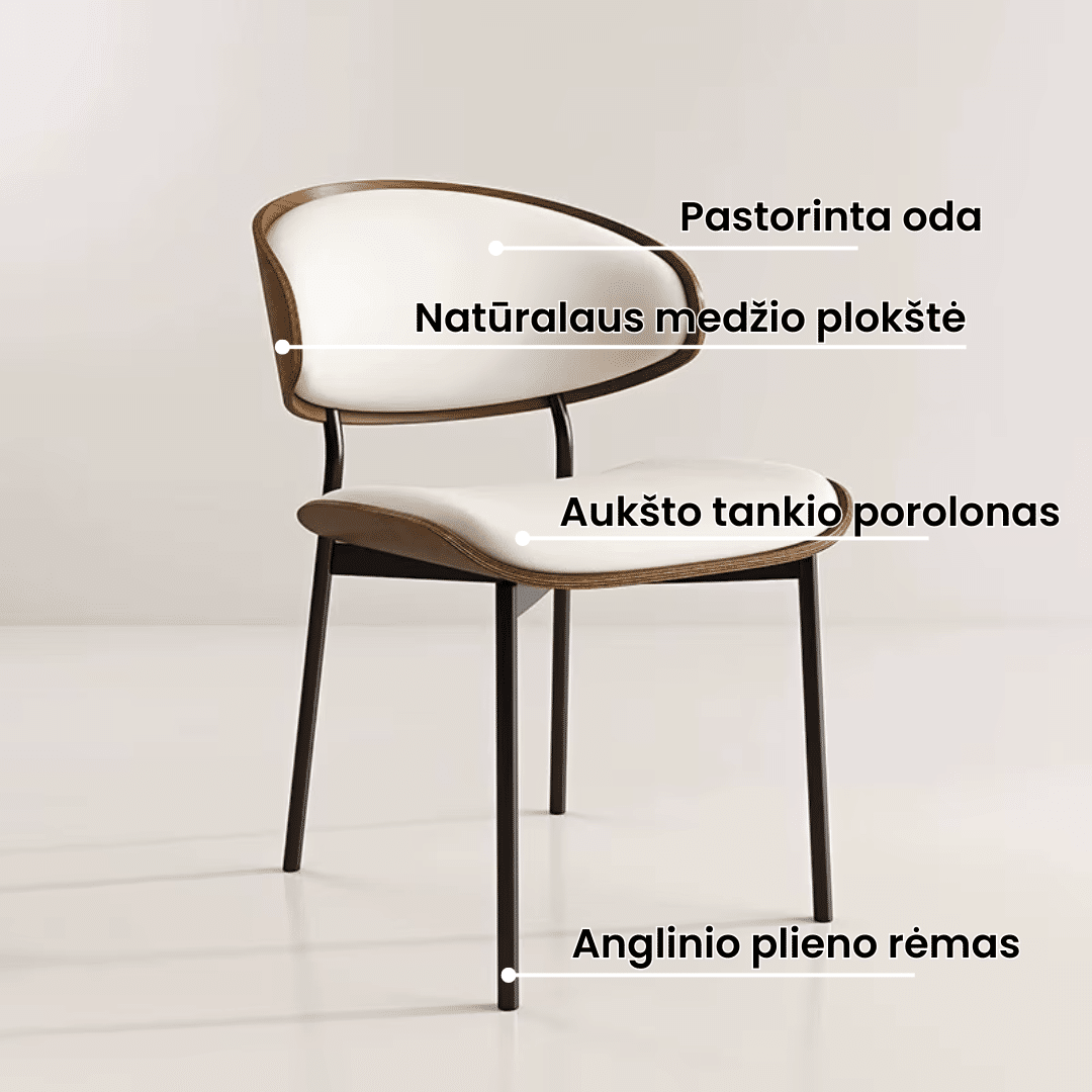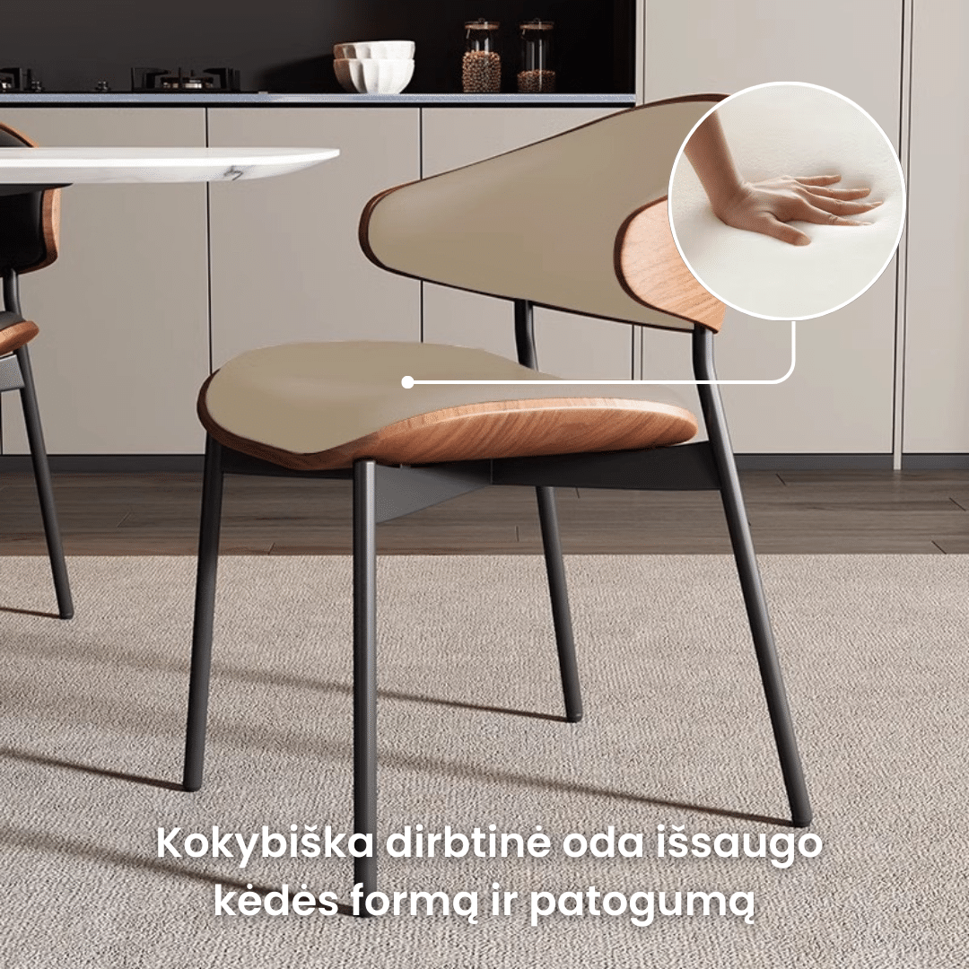 Atlošas ir sėdimoji dalis apmušti kokybiška oda, kuri išlaiko formą ir komfortą net kasdien naudojant. Paviršius lengvai valomas – nereikalauja ypatingos priežiūros.