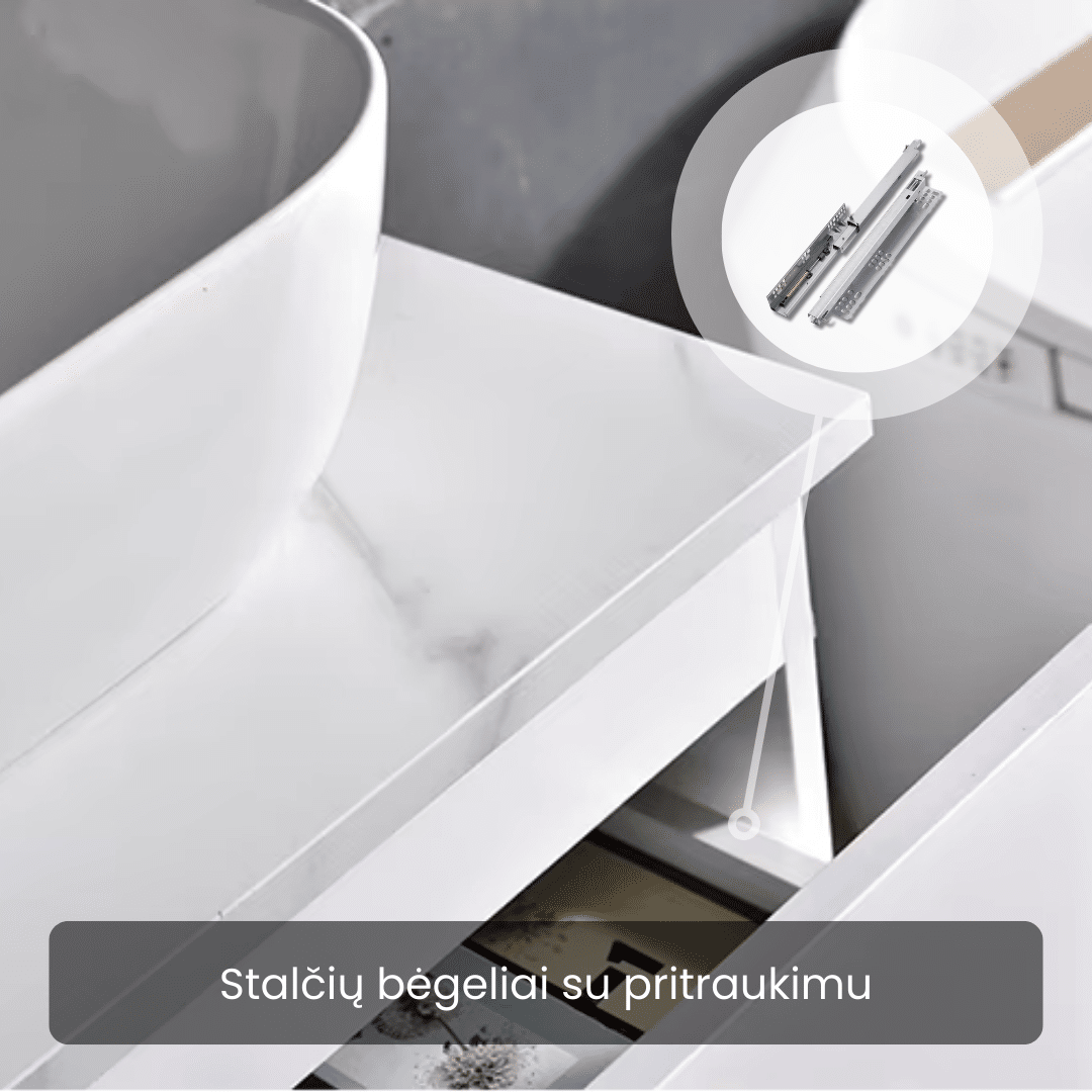 Talpūs stalčiai užtikrina tvarkingą kasdienių priemonių laikymą ir greitą pasiekiamumą.
