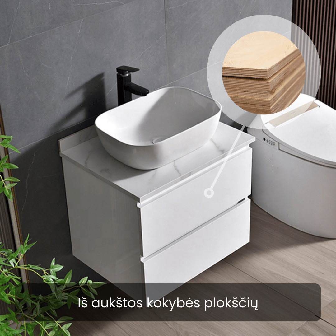 Kokybiška fanera, vientisas keramikinis praustuvas, akmens stalviršis ir patikimos nerūdijančio plieno detalės užtikrina ilgaamžiškumą, patogų naudojimą ir lengvą priežiūrą.